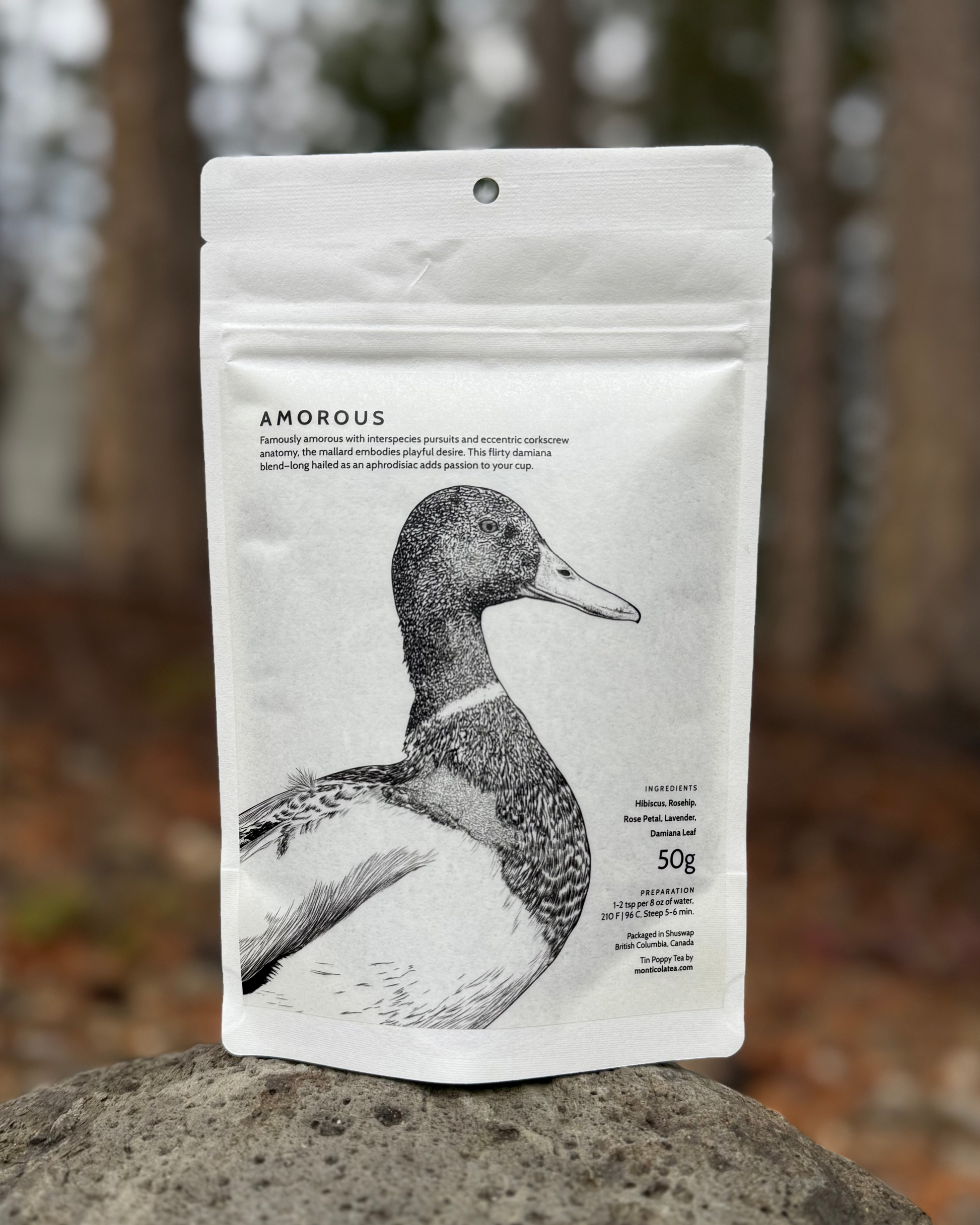 This tart and naughty aphrodisian floral blend, romantic in colour and disposition features ancient Damian leaf, traditionally used to treat headaches and nervous stomachs but maybe most famously as a libido enhancer. Amorous makes a libidinously refreshing iced tea drink.